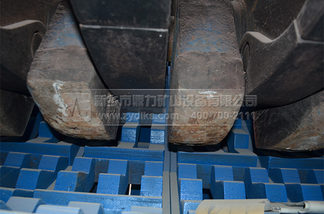 2、調(diào)節(jié)襯板上的彈簧裝置可以自動規(guī)避大塊物料,當(dāng)大塊物料撞擊調(diào)節(jié)襯板的時候,彈簧裝置會自動收縮,將其排除機體,了損壞機體部件的隱患。