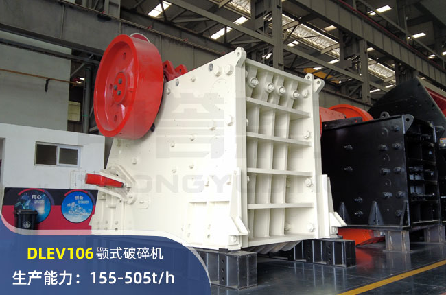 DLEV106鄂式破碎機每小時的產量為155-500噸,進料尺寸1060×700mm,排料口調整范圍60-250mm,電動機功率110kw,是屬于產量適中的顎式破碎機,一般適用于中小型破碎生產線。