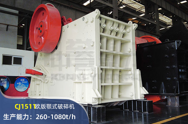 CJ1511顎式破碎機進料口尺寸1500×1070mm,進料粒度850mm,出料大小125-300mm,電機功率200kw,時產(chǎn)可達1080噸。
