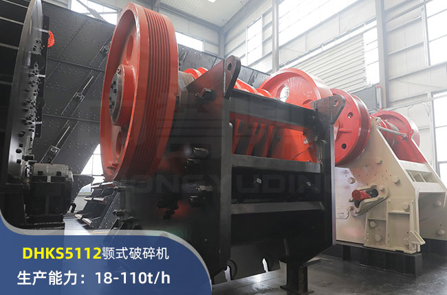 DHKS5112顎式破碎機進料口尺寸1300×300mm,進料粒度240mm,出料大小20-90mm,電機功率75kw,時產量在110噸。