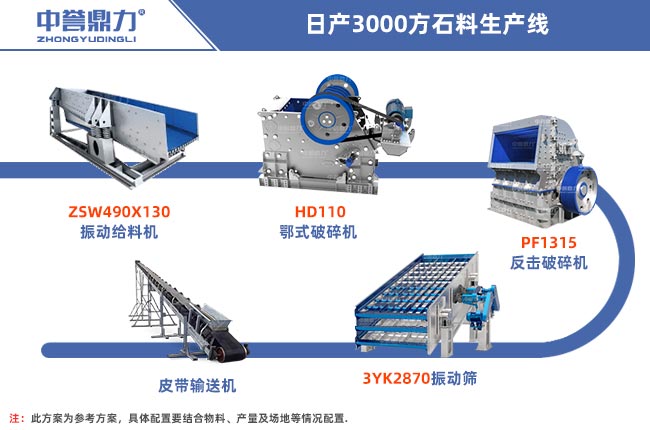 一破成型日產3000方石料生產線工藝圖