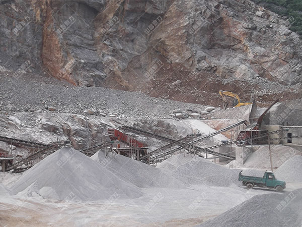 采石場在生產沙石的過程當中先對巖石進行一步的粗碎過程,然后緊接著將已經生產出來的成品粗骨料進行下一步的破碎過程,步破碎主要是在破碎機中達成的,通常情景下要靠皮帶運輸機進行輸送,然后通過礦山振動篩 的影響將整型破碎過后的巖石進行分離,分離的結果通常可以取得兩種巖石,一種是符合制沙機粒度要求的將直接進入下一道流程,另一部分不符合生產需要的將被又一次通過返料的過程進入細磨的過程,而初始進入下一道流程的石子也分為兩種,一種是符合要求的只要又一次通過洗砂的過程就可以成為成品了,而其余的還要又一次進行破碎,