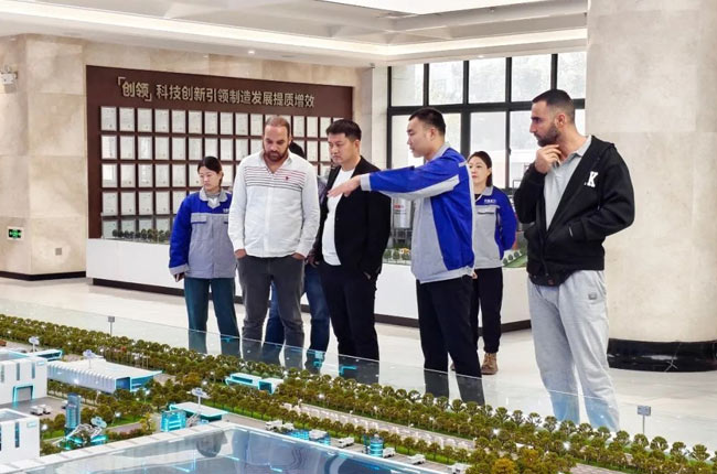 10月24日,來自印度、埃及和敘利亞的國外客戶來到中譽鼎力智能裝備廠區實地考察,裝備制造中心和市場客戶服務中心進行了產品、業務、服務等介紹。