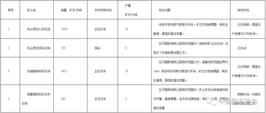 鳳山縣采石場(chǎng)開(kāi)發(fā)利用情況