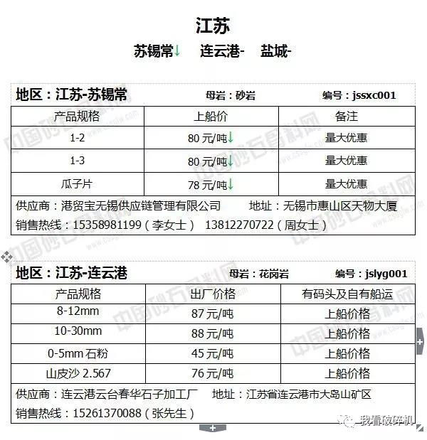 江蘇地區(qū):蘇錫常砂石價(jià)格普遍下調(diào)2元/噸,連云港砂石價(jià)格相對(duì)持平,可能會(huì)有1元/噸左右的波動(dòng)幅度。