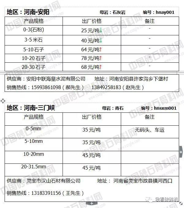 河南地區(qū):安陽(yáng)10-20石子價(jià)格上調(diào)19元/噸,10-20石子價(jià)格上調(diào)7元/噸,石粉和米石小幅下調(diào)1元/噸。