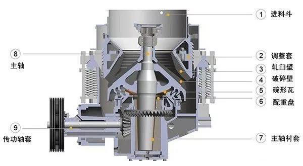 每臺圓錐破的送料速度,是砂石正常生產和機器運轉功率的因素。若對這塊無很好的檢修保養,就會使不變傘板與調改環等部位發生偏磨現象。如此一來,就增加了圓錐破設備彈簧的支承壓力,從而引起顛動,大大引起使用時間。