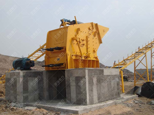 3、在反擊式破石機口徑上方制作一個可控給料漏斗,使反擊式破石機給料均勻,并已免過量現象;