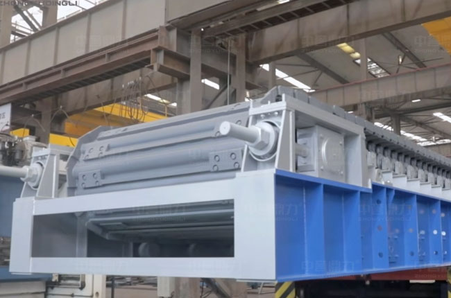 中譽鼎力板鏈式給料機鏈板采用強度大、硬度高、韌性好的合金鋼壓制而成,采用的是坦克鏈,安裝維修方便,工作噪聲小,可高速運動,能很好匹配變頻裝置調節喂料速度。
