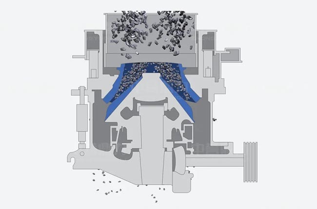 中譽鼎力多缸液壓圓錐式破碎機可滿腔給料,工作時,動錐在偏心套的作用下做旋擺運動,帶動破碎壁對軋臼壁間的物料進行擠壓、搓碾破碎。