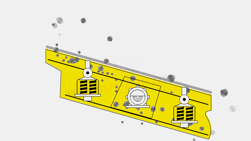 振動篩的運動是由電動機通過三角帶驅(qū)動具有偏心質(zhì)量的激振器,從而使篩機做周期性的不對稱往復(fù)機械振動,使篩面上的物料層松散并離開篩面被拋起,使細級物料能透過料層下落,通過篩孔分離,并將卡在篩孔中的物料振出,細級物料向下部移動,通過篩網(wǎng)孔徑大小限制,實現(xiàn)篩選作業(yè)。