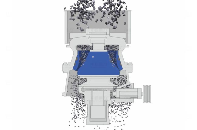中譽鼎力DLD系列單缸圓錐式破碎機屬層壓碎石設備,設備工作時,由電機驅動水平軸旋轉,水平軸通過齒輪帶動偏心套旋轉,偏心套帶動動錐部做圓周擺動,實現對石塊進行擠壓破碎。