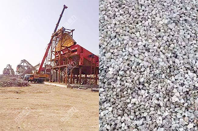 設(shè)備配置簡單,建設(shè)周期短,投資金額低是該項目的主要特點,整套生產(chǎn)線設(shè)備均安裝在室外,場地比較大,地勢平緩,土建難度較低,振動篩、石料輸送機(jī)等設(shè)備采用鋼結(jié)構(gòu)支撐,因為沒有除塵措施,所以整條生產(chǎn)線在作業(yè)時灰塵比較大,如果后期需要環(huán)保生產(chǎn),還可以加裝收塵設(shè)備。