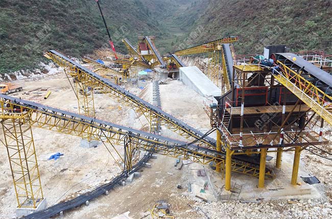 該項目是貴州黔南客戶與中譽鼎力合作建成的碎石生產項目,于2016年12月份正式投產,主要配置了重錘破、振動喂料機、振動篩等生產設備,每小時的產量在500-600噸以上,一天的產量在5000噸左右。