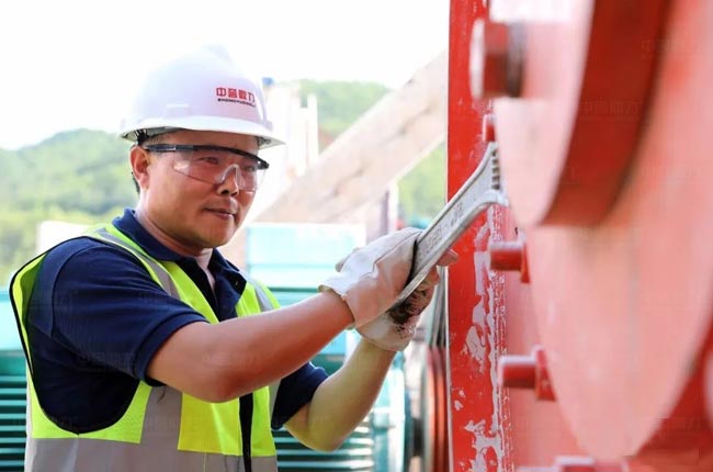 鼎力工程師現(xiàn)場檢查給料機、篩分機、制砂機等機制砂生產(chǎn)設(shè)備情況