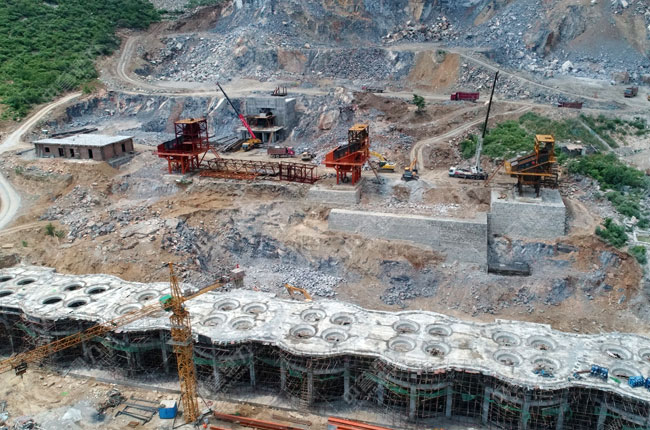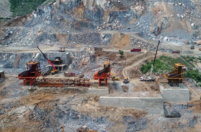該時產800噸石灰石骨料生產線于2018年6月投產使用,其使用的石子加工設備,如給料機,重錘破,篩分機等均由中譽鼎力設計配置,主要生產30-40、20-30、10-20、5-10石子骨料。