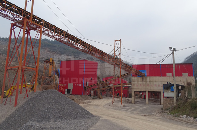 湖北宜都大水橋采石場建設的1200噸碎石生產線,為實現節能環保,生產中的主機設備實行密閉設計,加上噴淋裝置、除塵裝置,實現減少粉塵抑散污染,噪音傳播,響應了節能環保號召。
