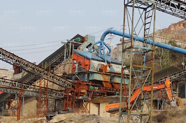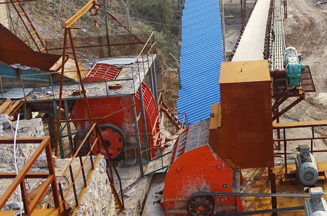 該項目位于黃石鐵山區,設計產量在800噸左右,日產量可達萬噸,于2014年10月建成,頭破采用PCZ1615重錘破、二破采用PC1220錘破和6臺YKZ3070振動篩設備。
