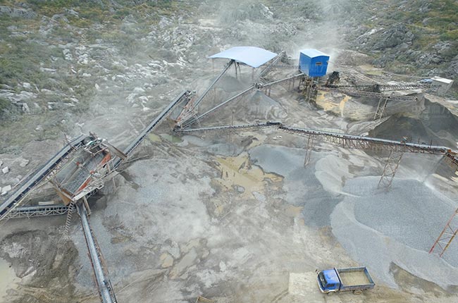 兩道篩分:PCZ重錘反擊式破碎機破碎后的石料,通過皮帶機送進頭道曬分機組進行篩分,會篩分出混合料,成品骨料及需要返回破碎機的石料;混合石料篩選通過二道篩機篩分,符合要求的通過成品皮帶機送至成品料堆;