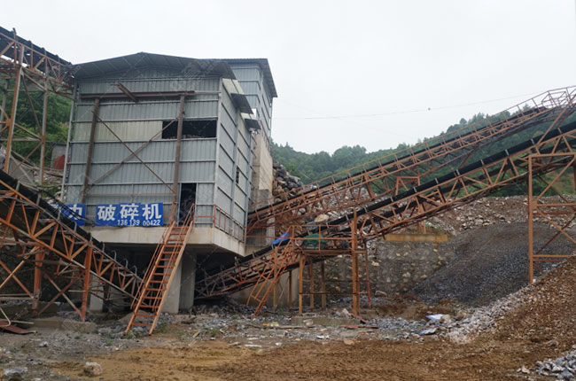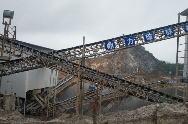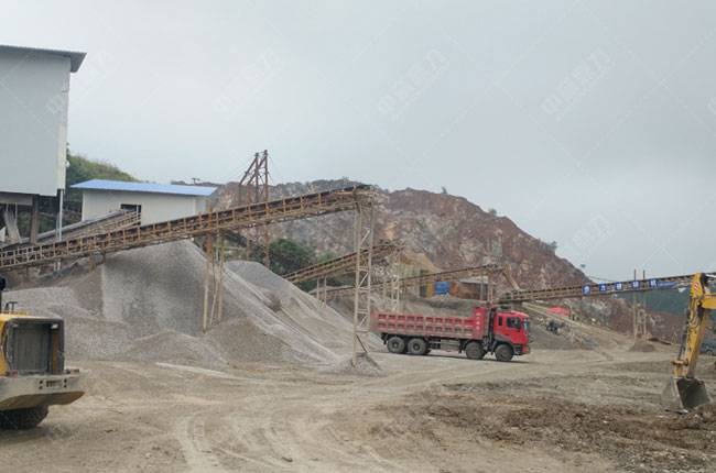 石灰?guī)r原石料經(jīng)1238給料機送入PCZ1512重錘破進行破碎,之后由皮帶機送入2470輕型振動篩篩選,后經(jīng)輸送機送至不同規(guī)格的成品料堆。