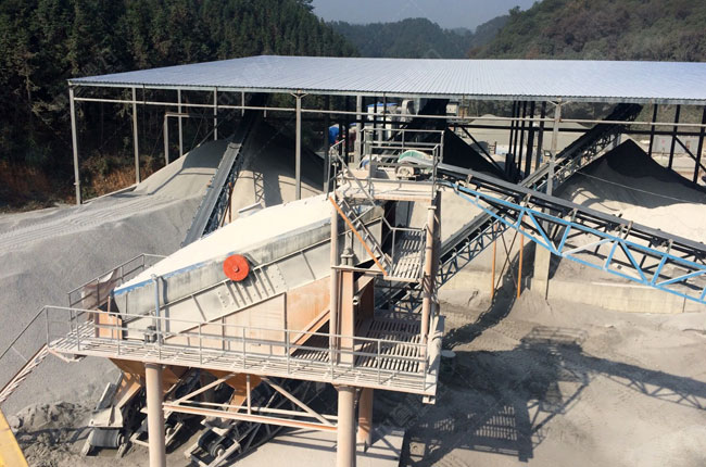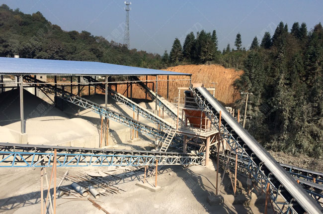 江西景德鎮(zhèn)時(shí)產(chǎn)200噸石子破碎生產(chǎn)線,加工的石料用于瀝青拌和站,同時(shí)進(jìn)行了環(huán)保設(shè)計(jì)。