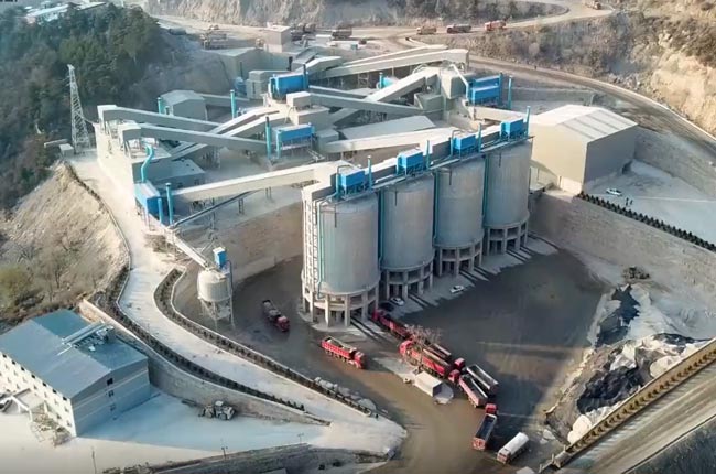 該時產1300噸石灰石生產線項目依照場地高低落差,砂石料加工設備的配置,主要道路運輸便捷性等合理規劃設計,將儲料罐設置在地勢偏低的場地,較大優化基建投資,減少投資消耗。