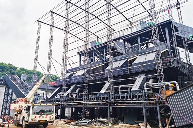 根據項目選址,砂石生產線采用鋼結構封閉設計,頭破后設置有中轉料倉,破碎后的成品石料儲存于鋼板筒倉,結合砂石料自動裝車系統可實現筒倉下刷卡定量裝車。