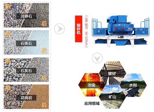 3、VSI立軸細碎機設備:經過處理能力大,價格適中,產能:60-520噸/時。
