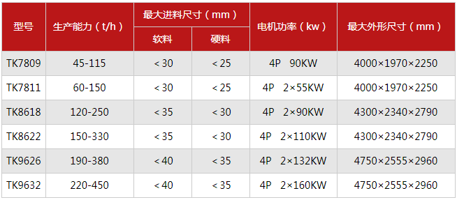 2、tk制砂機械:一種的造沙機機械,入料(軟料)不過50毫米、(硬料)不過45毫米、處理量(瀑落與送料)120-520噸/時、(送料)60-260噸/時。