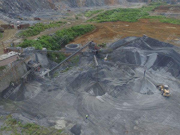 石頭生產線生產工藝流程如下:開采的礦石先由震動喂料機進料給顎破進行粗破,在破碎至得當細度后經由液壓圓錐進行規格整形,之后由立軸沖擊碎石機又一次進行破碎,再經由篩機篩選分級出成品,其成品的規格由碎石設備的型號和篩機的型號。