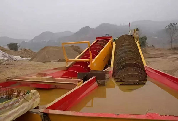 螺旋洗石機(jī)工作時(shí),電機(jī)通過V型皮帶、減速機(jī)、齒輪減速后葉輪緩慢運(yùn)行,砂石有喂料槽進(jìn)入洗槽中,在葉輪的下翻滾,并互相破碎,除去覆蓋砂石表面的異物,此時(shí)傷害包覆砂粒的水汽層,以利于脫水;此時(shí)于沙石反方向的加水,形成強(qiáng)大水流,立即將異物及比重小的異物帶走,并從溢出口洗槽排出,完畢清洗影響,干凈的砂石由葉片帶走,后砂石從運(yùn)行的葉輪倒入出料槽,完畢砂石的清洗影響,