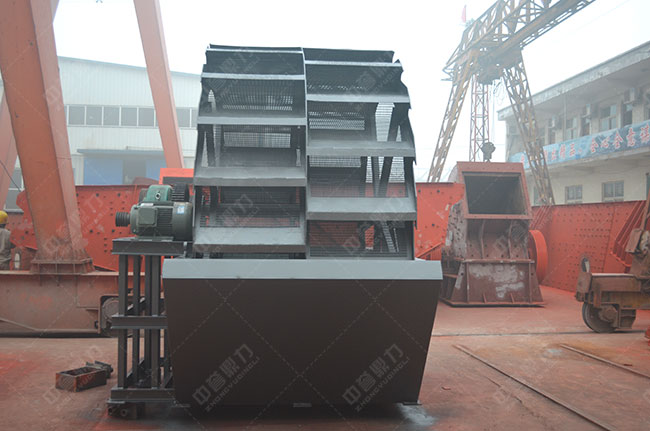 大型水洗砂機(jī)設(shè)備有一套旋轉(zhuǎn)的洗砂葉輪,利用V型皮帶、減速機(jī)的驅(qū)使,使葉輪旋轉(zhuǎn),砂石經(jīng)喂料槽進(jìn)入洗槽中,在葉輪的驅(qū)使下翻轉(zhuǎn),砂石之間出現(xiàn)彼此研磨,除去遍及其表觀的臟東西,通過(guò)加水引起強(qiáng)悍的水流,將臟東西帶走,完成清洗工作,該機(jī)洗砂規(guī)程中耗水量少,細(xì)砂流失少,是一種經(jīng)濟(jì)、切實(shí)的砂石清洗機(jī)械。