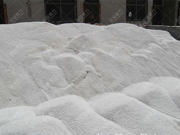 將經歷粉碎后,粒度大小適宜的青石由輸送設備送至石英砂制砂機中,物料進入石英砂制砂機中后,經歷石英砂制砂機的粉碎過程、分級過程與分離過程,而制得成品。