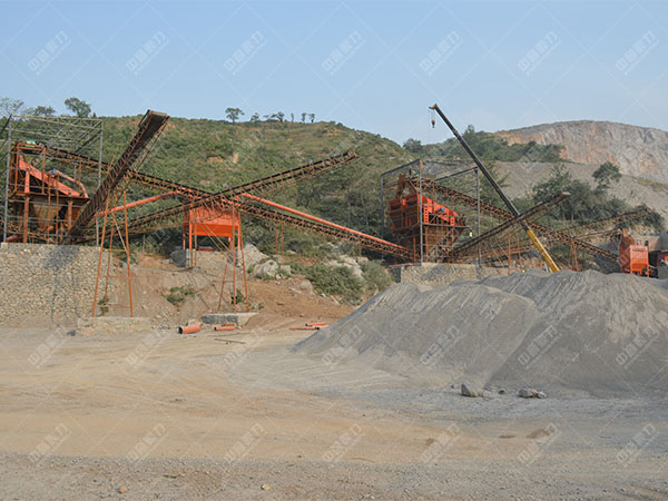原料堆內(nèi)的巖石在振動喂料機(jī)的影響下,被均勻、持續(xù)的送入圓錐碎石機(jī)進(jìn)行破碎解決,經(jīng)破碎后的巖石由運(yùn)輸機(jī)運(yùn)輸?shù)剿樯皺C(jī)進(jìn)行制砂生產(chǎn)解決,制砂后的巖石進(jìn)入篩機(jī)進(jìn)行篩選分級,合格的則進(jìn)入洗砂機(jī)進(jìn)行清洗解決,不合格的返回碎砂機(jī)進(jìn)行又一次制砂生產(chǎn),洗沙后的巖石在運(yùn)輸機(jī)的影響下輸出即為成品。